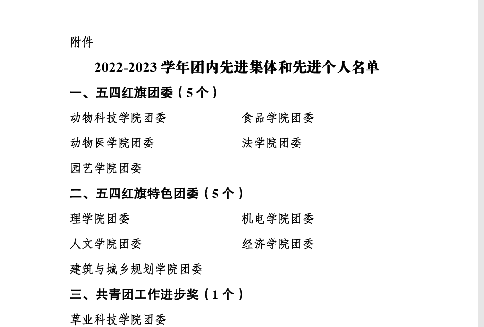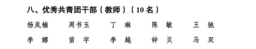 为充分发挥示范引领作用,激励各级团组织和广大团员、团干部踔厉奋发、创先争优,4月28日,校团委发出《关于表彰2022-2023年度团内先进集体和先进个人的决定》,学院获评“五四”红旗特色团委,陈敏获评“优秀共青团干部”,英语202102团支部、 汉语202001团支部、 人力202001团支部、 人力202104 团支部、 汉语202103团支部等五个团支部获评“五四红旗团支部”,谢立夏等65名同学获评“优秀共青团员”。