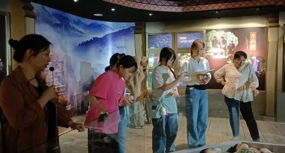 绿春县博物馆博物馆馆内收藏了世界哈尼族的生产、生活、宗教、纺织、服饰等在内的三千余件珍贵物质遗产(包括相关书籍),全方位、多角度收集、保存、展示了世界哈尼族的生产、生活习俗、原始宗教观念,体现了哈尼族深厚的文化底蕴。在当地讲解员带领下,团队认真观看各个展厅,深入感受哈尼族文化。在讲解员的生动讲解下,团队成员对哈尼族文化有了更深刻的感悟。团队了解到,绿春县是哈尼族聚居的核心地带,境内哈尼族人口占全县人口86.45%,是全国单一少数民族人口比例较高的县之一。在千百年的文化传承中,哈尼族人民创造了灿烂辉煌的民族文化。大兴寨大寨村,更是被国务院确定为全国哈尼语标准音所在地。团队采访到博物馆工作人员,了解到绿春县正在采取视频播放、人物表演等活动,并发挥其保护传承的功能,从而成为世界上内容最丰富、涵盖面最广泛的抢救和保护、研究和开发哈尼族传统文化的资料库和研究哈尼族文化遗产的中心。