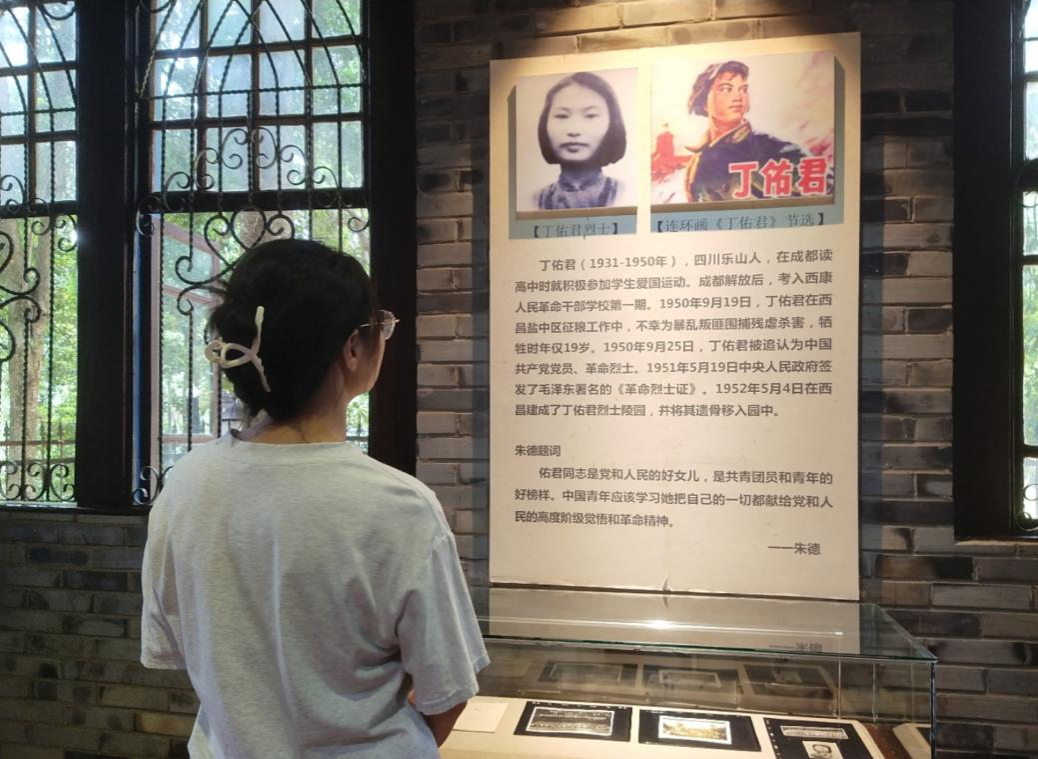 团队成员秩序井然,在工作人员指引下进行了参观。博物馆内分别展示了红军标语、红军纪律歌、中国共产党十大政纲等红色记忆。期间,在工作人员介绍下成员们了解到丁佑君烈士于1950年在征粮工作中不幸为暴乱叛匪所围捕残虐杀害,后被追认为中国共产党党员、革命烈士。一件件西康往事、一抹抹红色记忆,承载的是革命历史的厚重,传递的是先烈坚韧不拔之志。