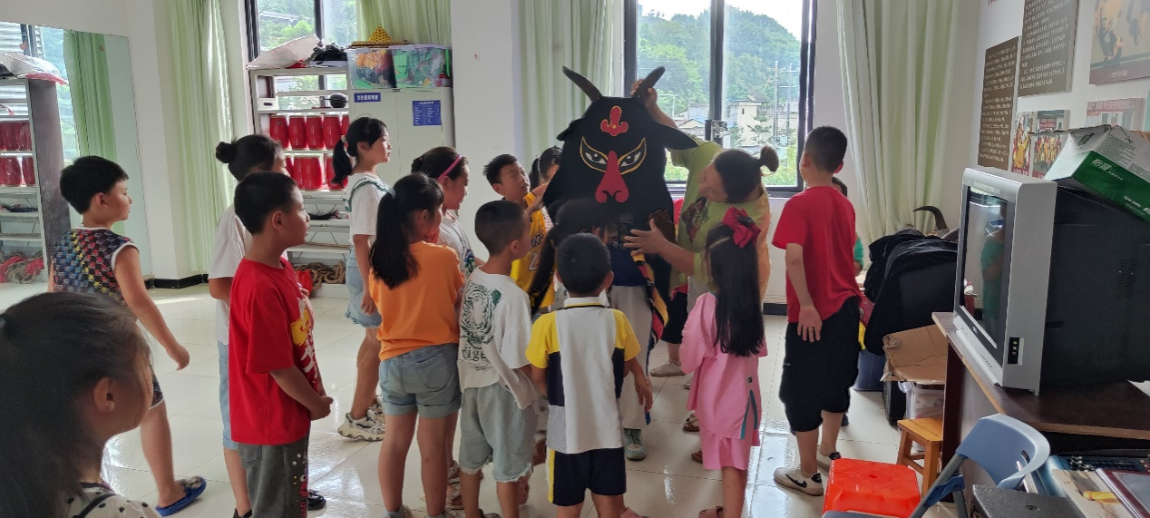 天全县思经镇凭借“牛儿灯”被命名为“四川省民间文化艺术之乡”,思经镇文化站拥有充足的表演资源,具备演出所需的专业道具。当同学们见到表演道具时,自发涌向道具,反映出年轻人逐渐回归优秀传统文化的趋势。