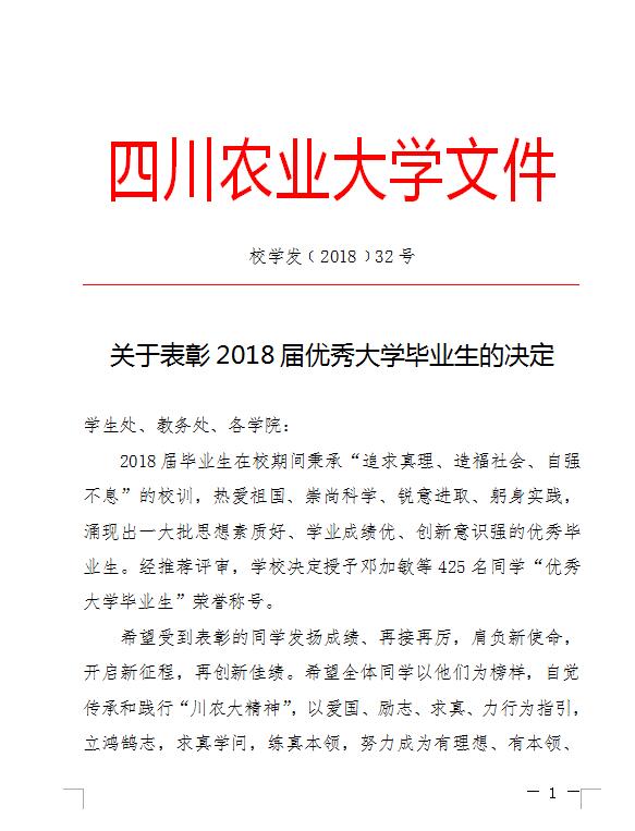 新葡的京集团350vip88882018届毕业生校级优秀大学毕业生获奖名单