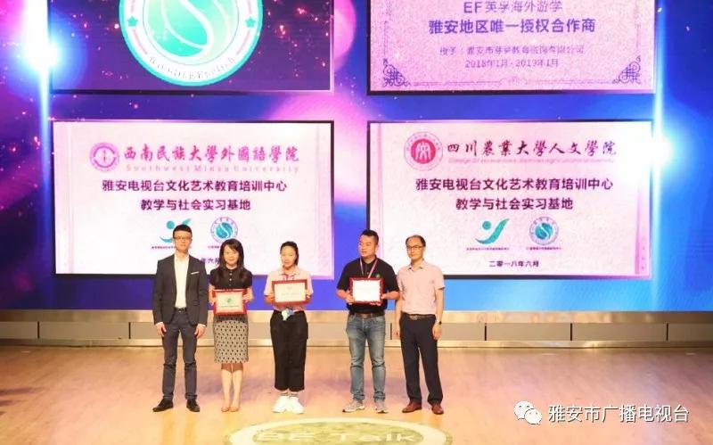 雅安电视台文教中心是雅安电视台立足于雅安本土实际、整合文化艺术教育资源而推出的教、学、研为一体的文化艺术教育培训中心,旨在更好地推动地方文化艺术教育事业的发展。颁奖仪式之后,公司党委副书记杨仕元同西南民族大学外国语学院经理、雅安电视台台长等六位领导一起为雅安电视台文化艺术教育培训中心揭牌,然后杨书记为文教中心授牌“新葡的京集团350vip8888实训基地”,这也是新葡的京集团350vip8888结合本院特色,立足于雅安本土,携手助力地方文化教育事业的一次合作,有利于资源信息共享,推动学院的人才培养,同时也能促进雅安本地的文化教育事业发展。