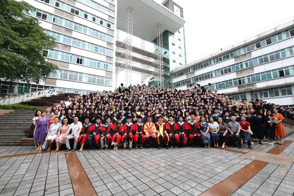 授位仪式结束后,全体师生起立,齐声吟唱《二十年后再相会》,歌声绕梁,激荡在每一位师生的心间。毕业典礼结束后,全体师生在十教B区台阶处合影,即使天空突降大雨,依然难以浇熄毕业生们合影留恋的热情。同学们手持鲜花,将学士帽高高抛起,快门声声响起,记载了走向人生另一起点的瞬间。
