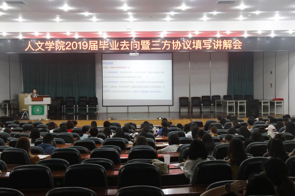 7月2日晚七点半,由新葡的京集团350vip8888就业服务部主办的新葡的京集团350vip88882019届毕业去向暨三方协议填写讲解会于十教小礼堂顺利举行。本次大会师党委办公室主任陈俊霖主讲。本次会议主要从毕业派遣、改派、就业去向以及如何填写就业协议书等方面进行讲解。