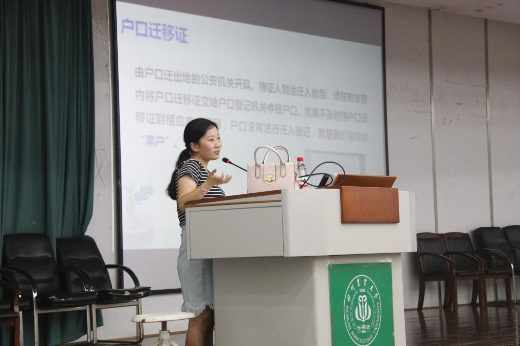 大会第二项内容是关于改派的解释说明,陈俊霖就改派流程三步骤进行了详细解释,并提醒大家改派时需要准备的材料,如原错误证件和手写的改派责任承诺书。她还对特殊情况的处理方法进行了说明,强调户籍迁移证一律不予改派,报到证原则上不予改派。